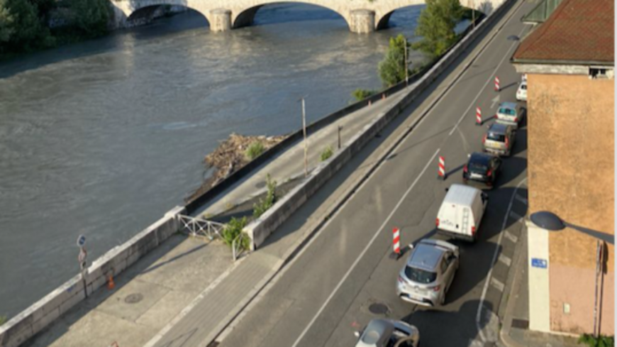 Les embouteillages des quais de l’Isère sont très fréquents et aggravés considérablement quand la montée des eaux de l’Isère contraint à sa fermeture quelques semaines. La municipalité avait déjà tenté de réduire encore la circulation par la mise en place soudaine d’une autoroute à vélos sur le quai rive gauche qui avait produit des bouchons monstres et rendu l’accès au CHUGA, le centre hospitalier, très difficile pour tout le nord de la Métropole.